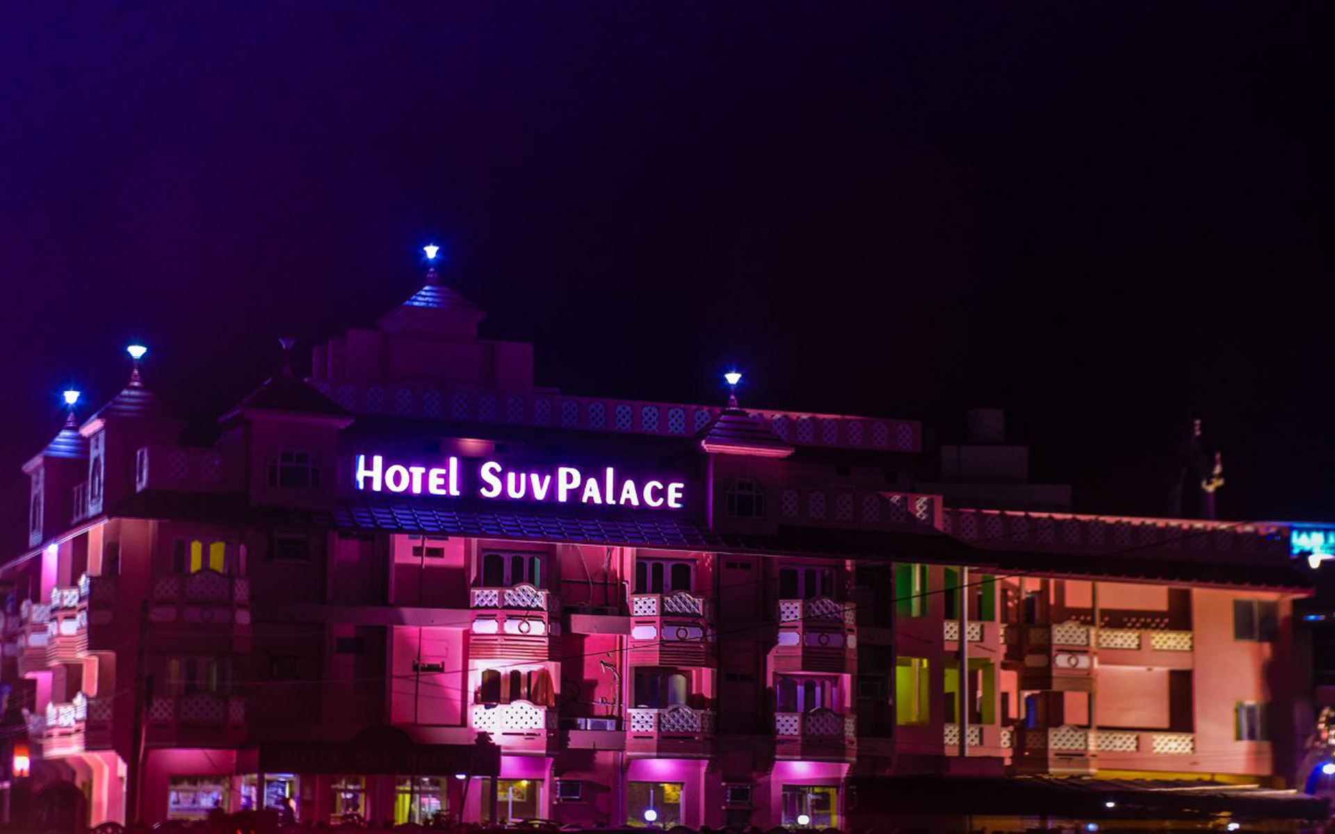 HOTEL SUV Palace located at the majestic shoreline facing the golden beach with a magnificent uninterrupted sea view. It is situated near the New Marine Drive Road of Puri town. The meticulously planned infrastructure and the stately ambience make it the perfect destination for tourists and corporate houses. With Delectable cuisine and excellent accommodation, HOTEL SUV Palace has become the preferred zone where the atmosphere is peaceful and unpolluted. HOTEL SUV is situated 65 km. from Bhubaneswar, 3 km. from railway station and bus terminal, shopping center within 300 meters, 3 km. from Jagannath Temple, 39 km. from Puri Sun Temple which is a UNESCO World heritage site and Asia's largest brackish water lagoon the dolphin point is near about 50 km., Tourist should take an opportune of tasting more than 100 delicious Mahaprasad of Lord Jagannath cooked ancient style, walk a few step in to the sea, watch little waves breaking at your feet. The beach has a gentle slope, making it very safe for swimming.